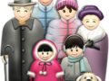 家族・ファミリーのイラストです。三世代同居の大家族や3人家族、4人家族を描いたフリー素材。
