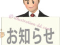 お知らせ 「お知らせ」ボードを持つ男性社員