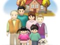 家族・ファミリーのイラストです。三世代同居の大家族や3人家族、4人家族を描いたフリー素材。