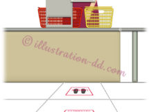 小売業・スーパー・ストア 並び位置の足型が続くレジ