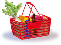 小売業・スーパー・ストア 商品が入ったスーパーのカゴ