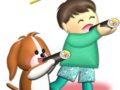 節分に丸かじりする恵方巻のイラスト。恵方巻きを食べる人やキャラクターのイラスト。